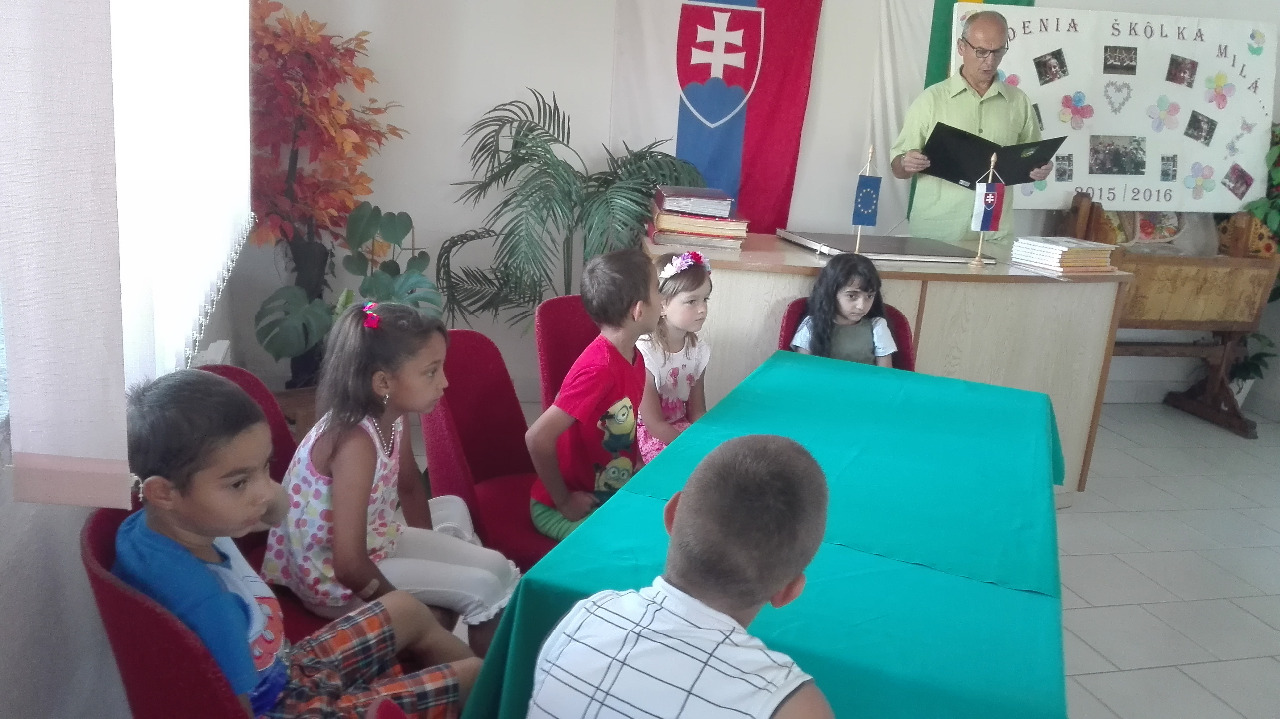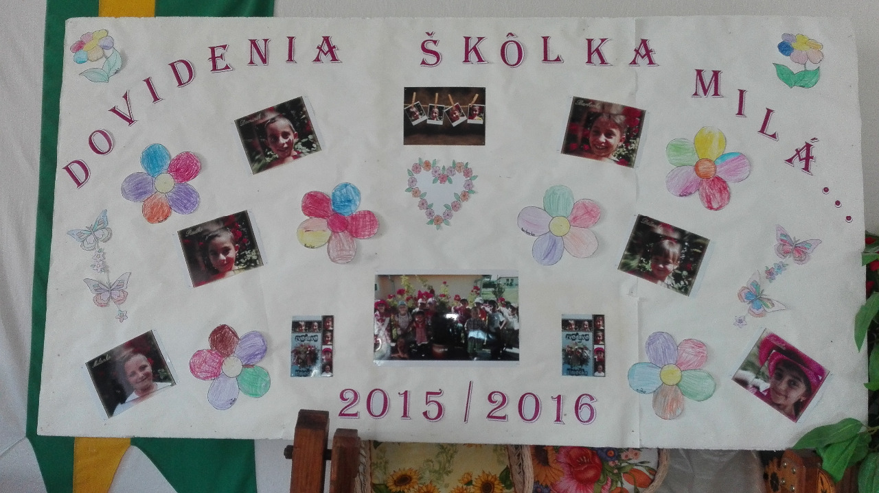 Vážení rodičia, je čas otvoriť stránku ďalšej životnej etapy vašich detí, ktoré krok za krokom opúšťajú svoj bezstarostný svet hier. Prichádza čas, kedy odložia svoje hračky a budú sa prispôsobovať dôležitejším každodenným povinnostiam. Ešte si živo pamätám uplakané tváričky, ktoré boli odpútané z náručia svojich rodičov do celkom cudzieho prostredia. Preto pani učiteľky neraz nahrádzali deťom matky, ich ruky prechádzali po líčkach detí a utierali im slzy. Tieto slzičky vyschli s pribúdajúcimi dňami, keď zistili, ako je im v materskej škole dobre, kde si našli kamarátov, zžili sa s prostredím. Ani sme sa nenazdali a z našich drobcov vyrástli krásne veľké deti, ktoré sú pripravené na vstup do základnej školy.