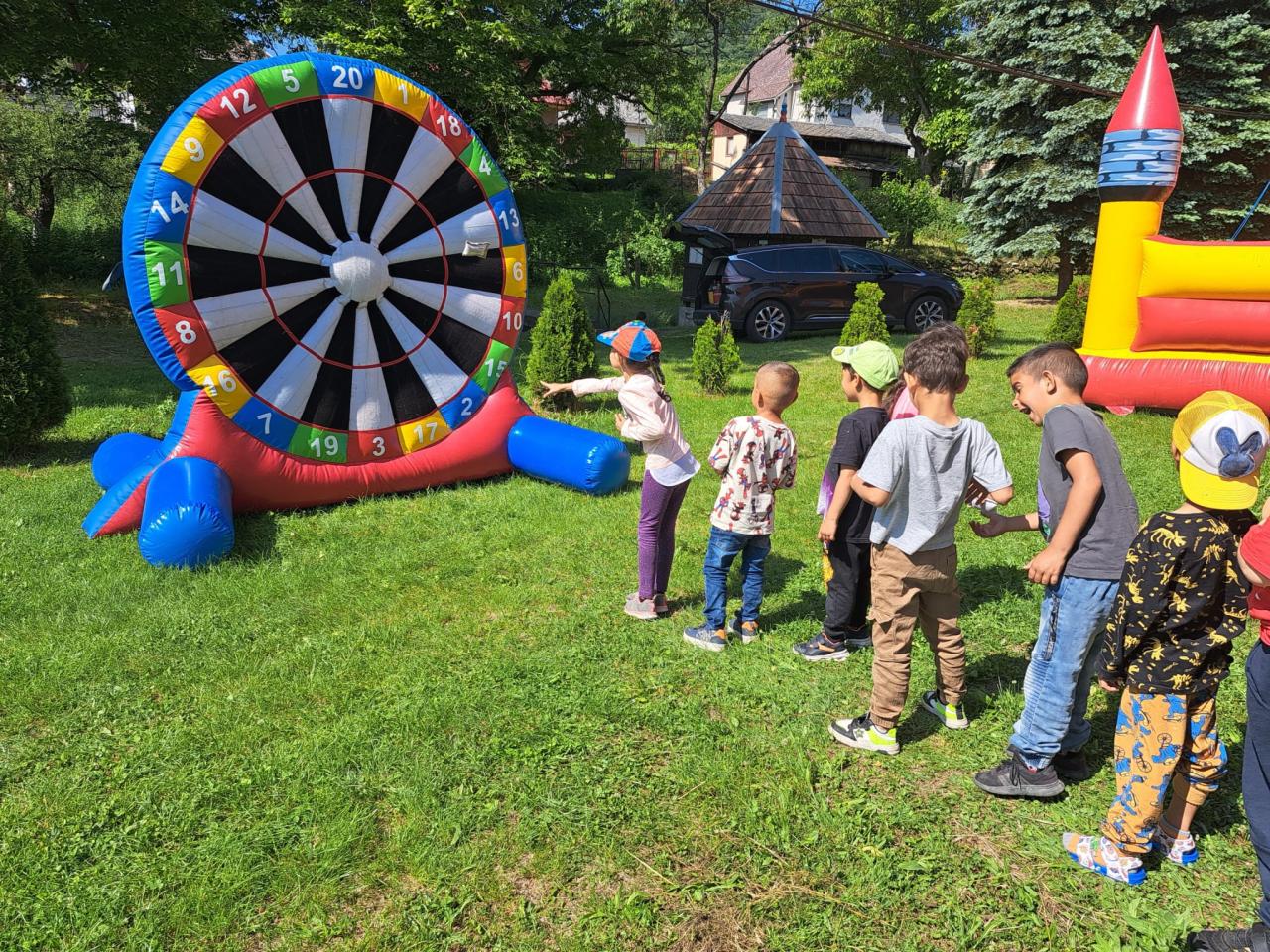 Tohtoročný TDR sme začali prekvapením v podobe skákacieho hradu. Pri príchode do MŠ už deti čakal „Vežičkový mickey mouse – hrad, z ktorého mali nesmiernu radosť. Od celodenného šantenia deti neodradilo ani horúce počasie. Počas prestávok si zahádzali vrecúška na nafukovací terč.