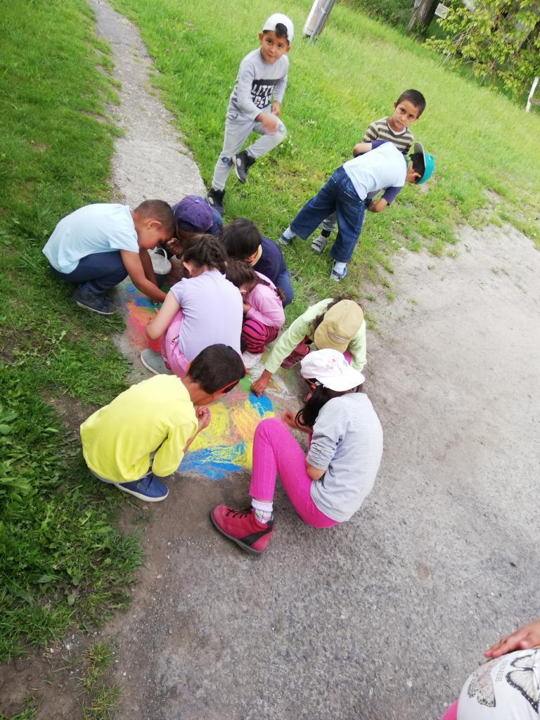 V stredu si deti vyskúšali kreslenie kriedami na asfalt.