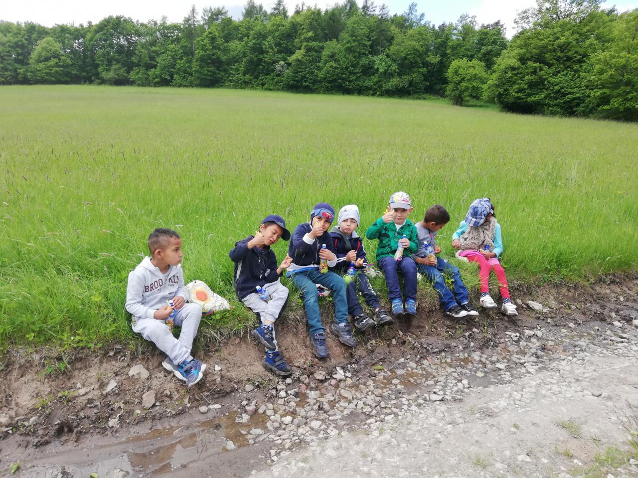 Tohtoročný Týždeň detskej radosti sa začal v pondelok 31.5. turistickou prechádzkou do okolia obce. Deti spoznávali prírodné krásy a zaujímavosti, rôzne rastlinky, chrobáčiky, veľké mraveniská, či obdivovali skákanie lúčnych koníkov. Snažili sa identifikovať stopy zvierat, ktorých bolo všade neúrekom. Cestou späť zachytil deti jarný dáždik a výnimočné májové krupobitie.