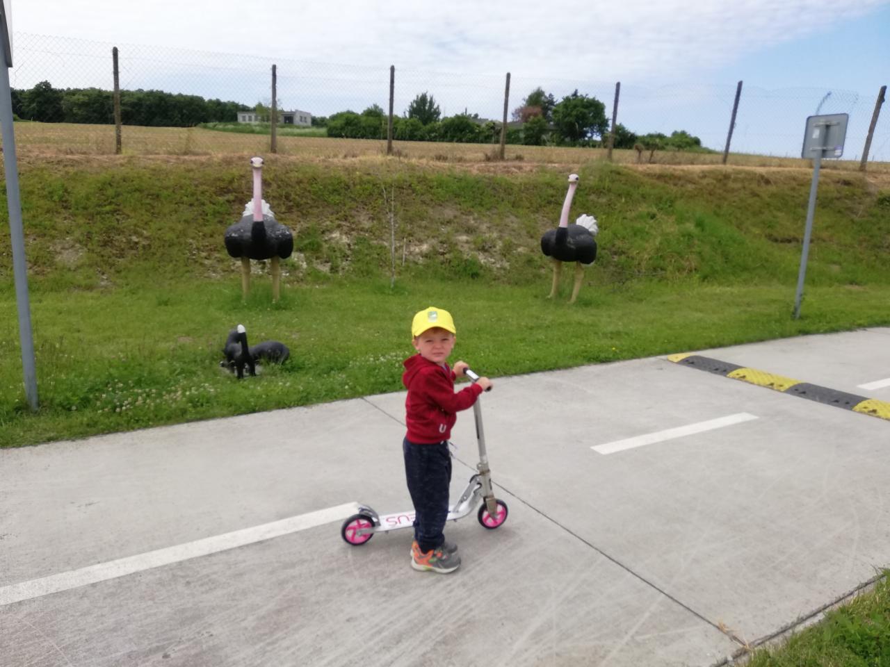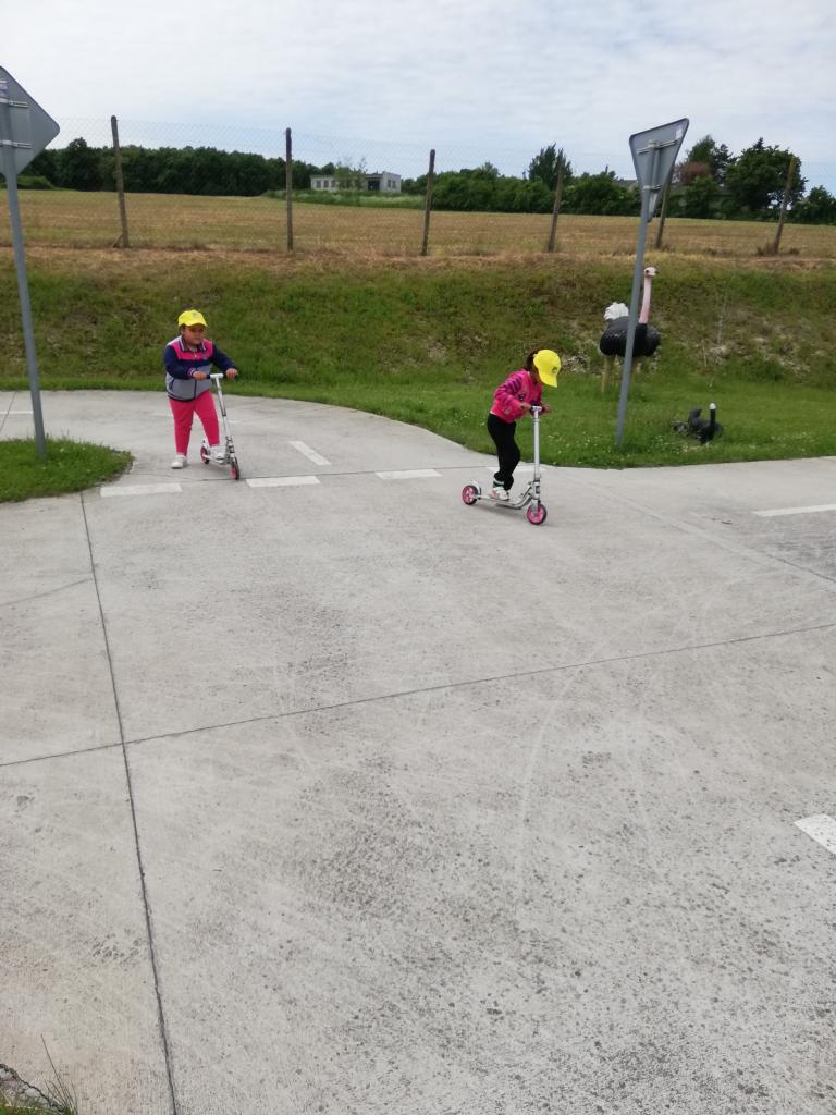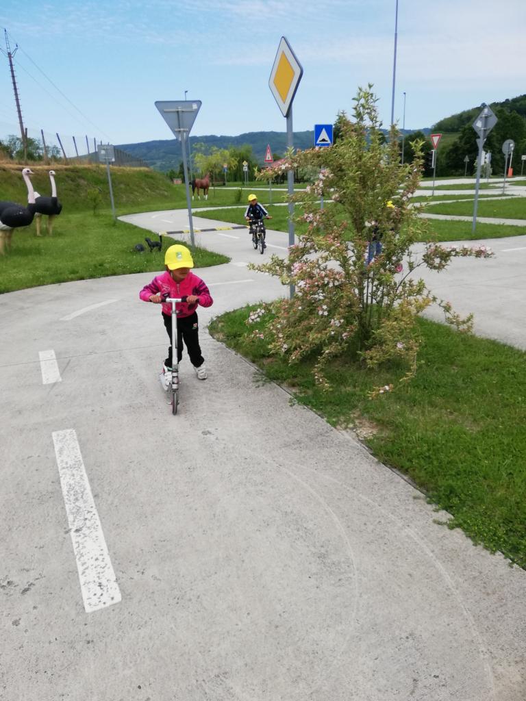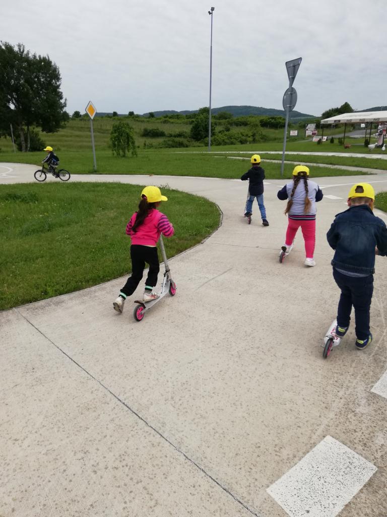 V stredu sme cestovali do Veľkého Krtíša na dopravné ihrisko. Pre deti už boli pripravené bicykle a kolobežky. Pani učiteľky im vysvetlili základné pravidlá cestnej premávky. Poskúšali všetko, zastavili sa pri každej značke, semafore, či železničnom priecestí. Poobzerali zvieratká, ktoré boli rozmiestnené v okolí ihriska, pri každom sa odfotili. Po dlhom, ale neúnavnom jazdení sme sa presunuli do mesta na taliansku zmrzlinu. To bola naša sladká bodka za krásnym a poučným výletom.