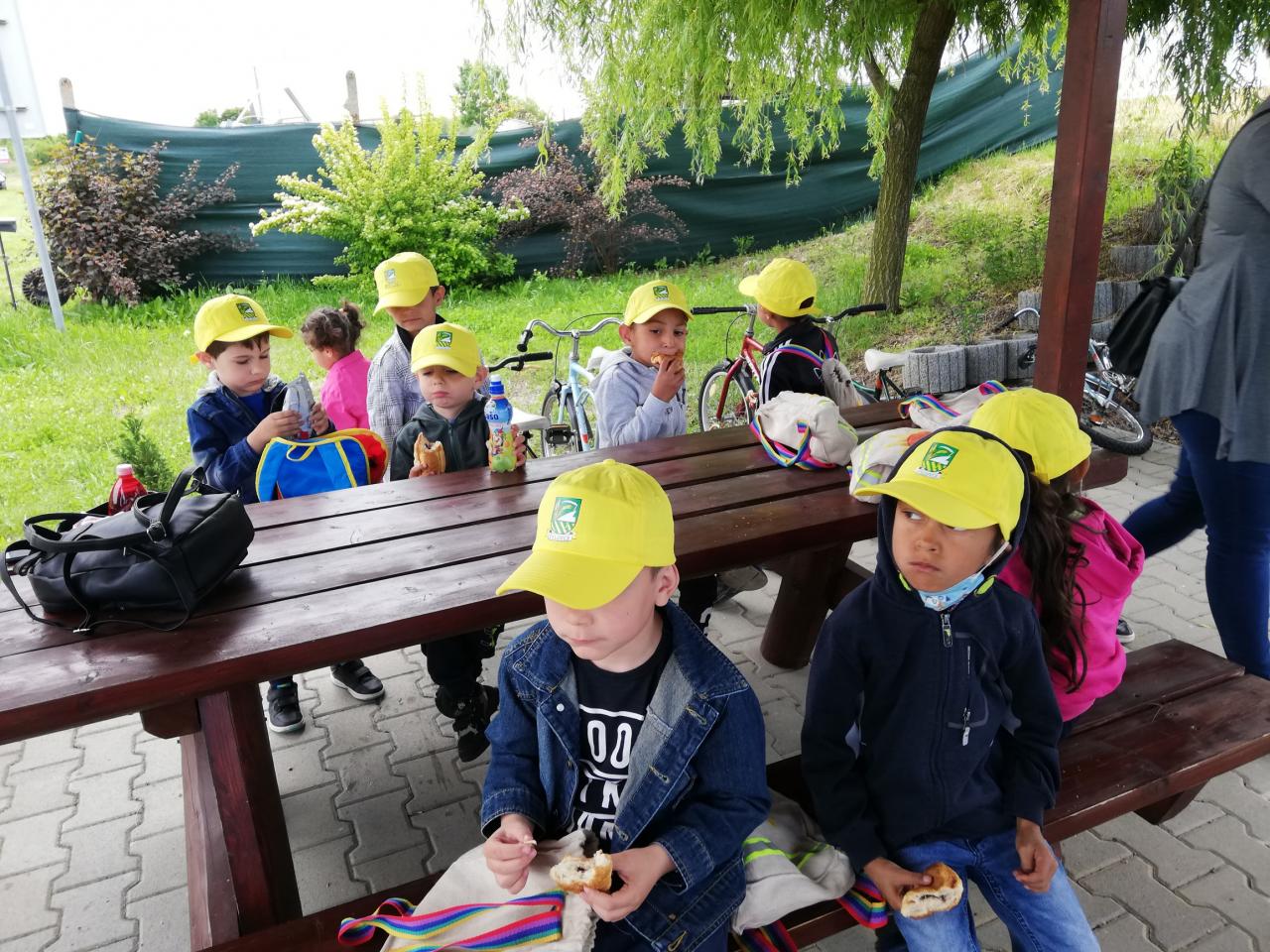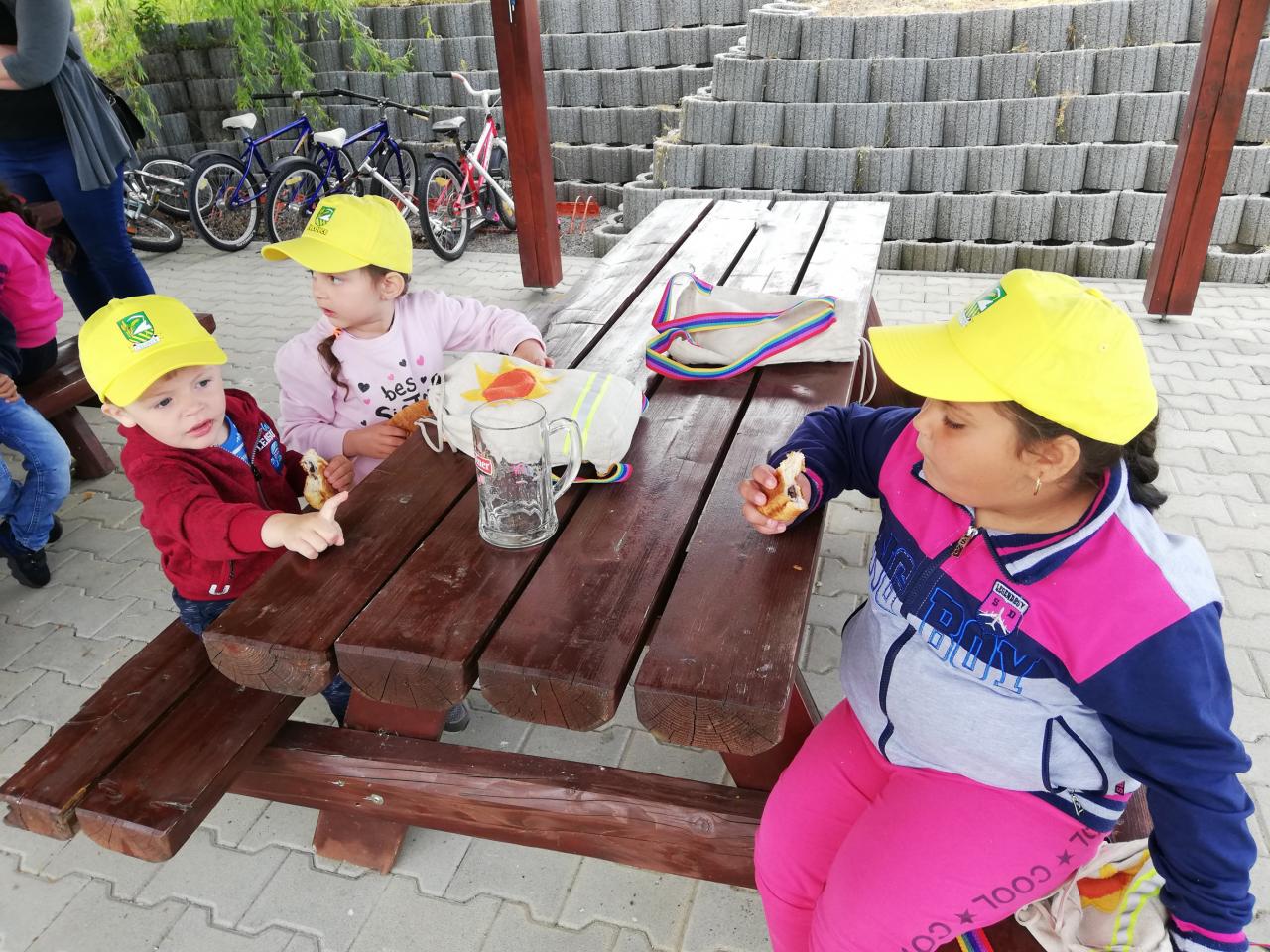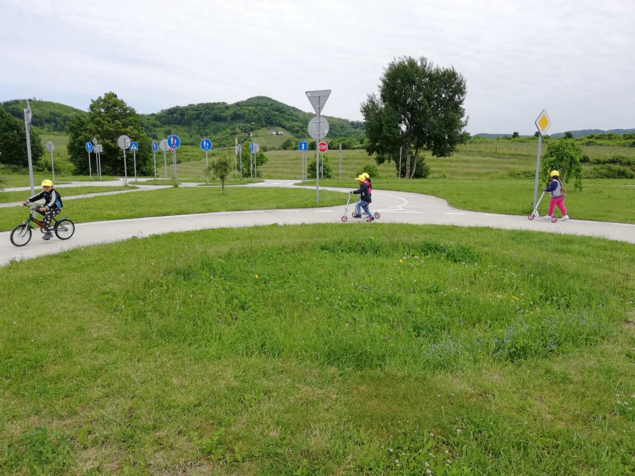 V stredu sme cestovali do Veľkého Krtíša na dopravné ihrisko. Pre deti už boli pripravené bicykle a kolobežky. Pani učiteľky im vysvetlili základné pravidlá cestnej premávky. Poskúšali všetko, zastavili sa pri každej značke, semafore, či železničnom priecestí. Poobzerali zvieratká, ktoré boli rozmiestnené v okolí ihriska, pri každom sa odfotili. Po dlhom, ale neúnavnom jazdení sme sa presunuli do mesta na taliansku zmrzlinu. To bola naša sladká bodka za krásnym a poučným výletom.