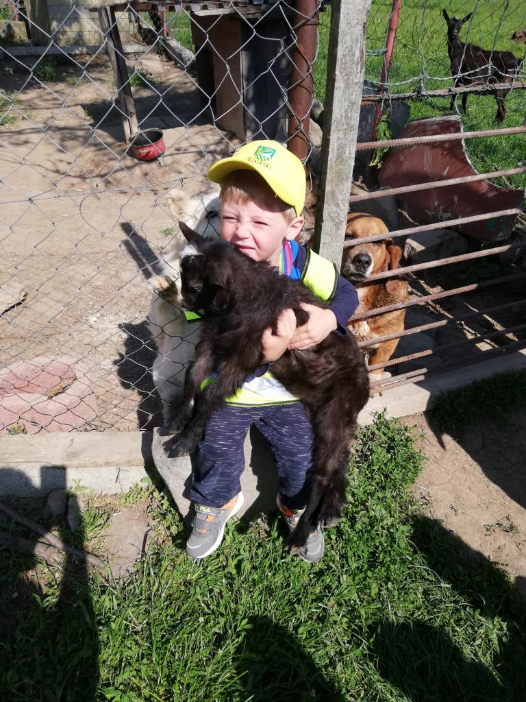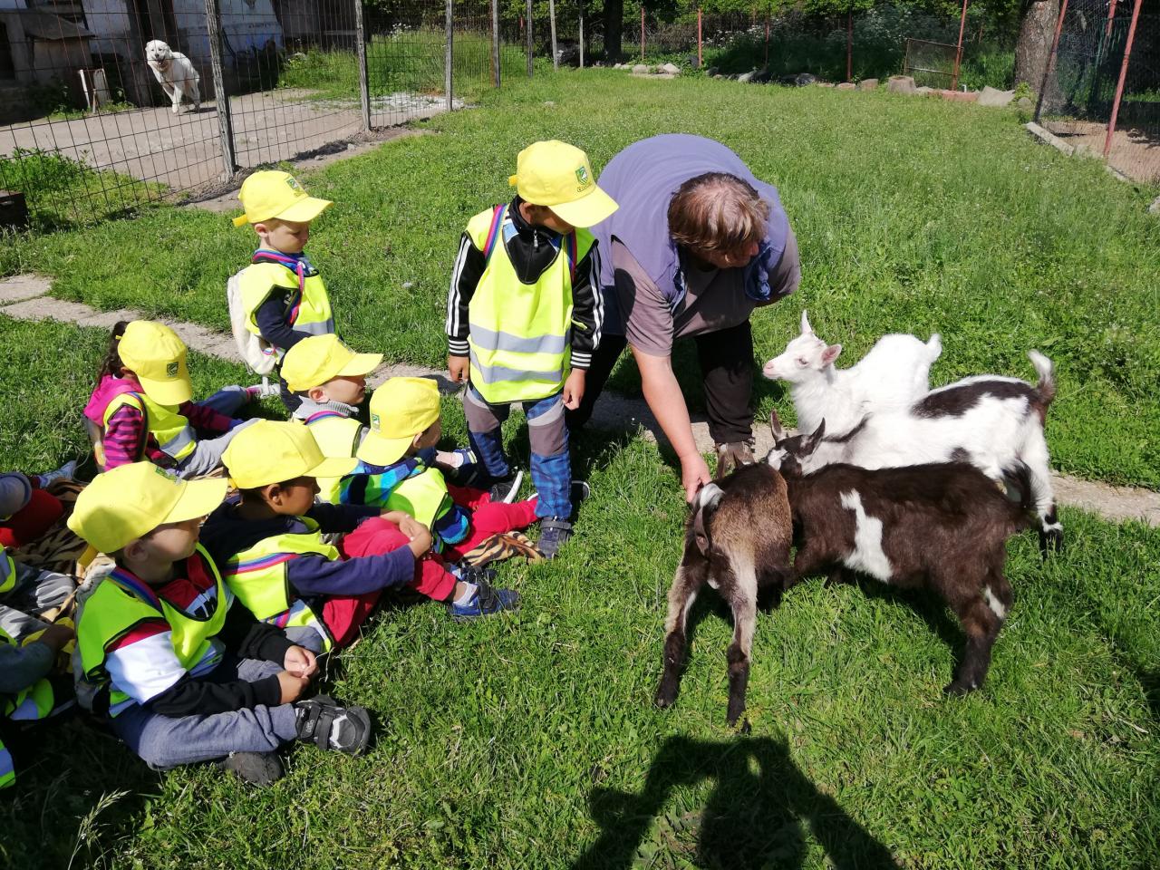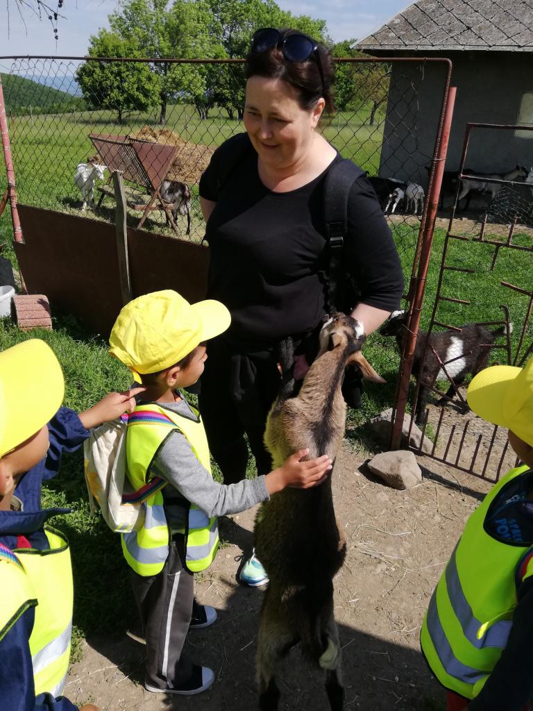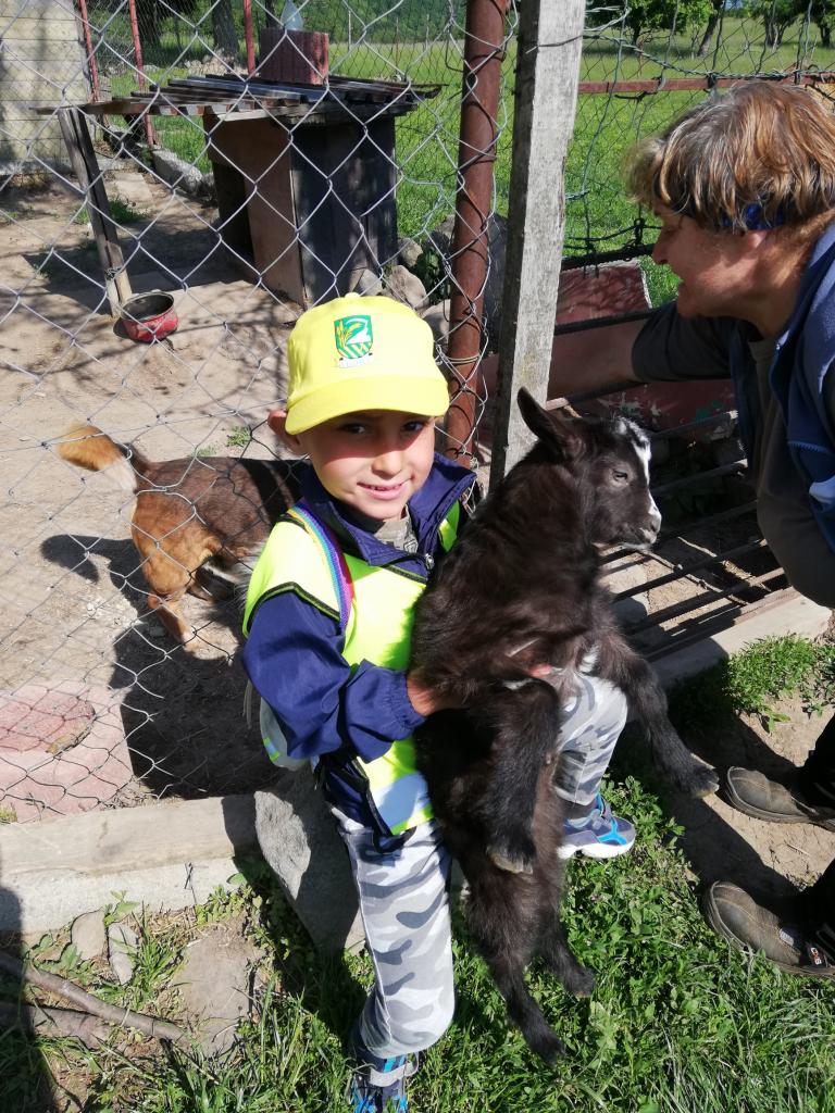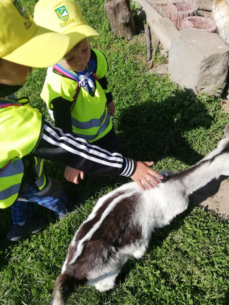 Štvrtok – podľa želania detí - výlet na Čelovské lazy časť Pustý hrad, kde býva jedna z pani učiteliek. Najúčinnejšou vzdelávacou metódou v MŠ je zážitkové učenie. Vďaka nej sa deti veľa dozvedeli o veľkých i malých kozičkách, ako vyzerajú, čo jedia, aký je z nich úžitok, ako rozoznávame kozieho „chlapca od dievky“, aká je veselá naháňačka s kozliatkami a aké príjemné je držať malé kozliatko v náručí. Vyhradený čas rýchlo ubehol a tak sme sa presunuli na susednú farmu, kde býva s rodičmi jedna zo škôlkárov. Deti sa vytešili s malými zajačikmi, šteniatkami veľkého psieho páru bernských salašníckych psov, vyskákali na trampolíne a pochutnali si na zdravom občerstvení. Aj tu čas rýchlo uplynul, bolo treba vydať sa na spiatočnú cestu. Plní dojmov, pocitov a zážitkov deti bez problémov zvládli cestu na autobusovú zastávku a počkali na autobus, ktorým sa vrátili späť do MŠ.