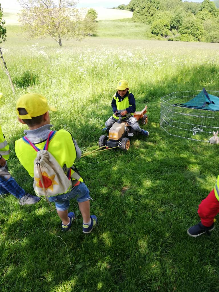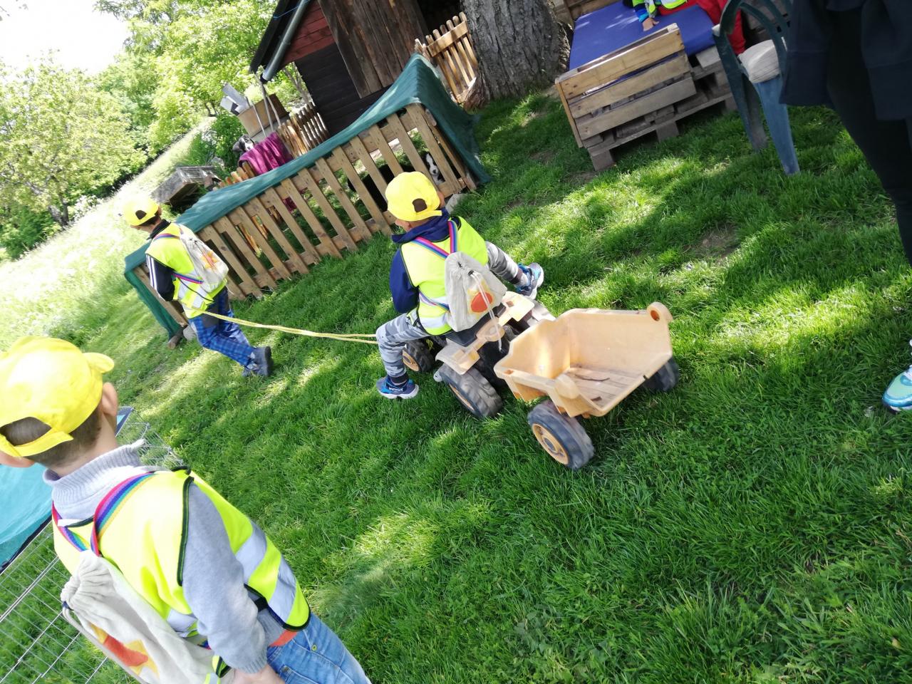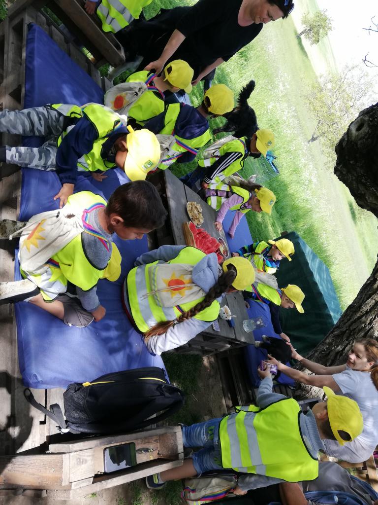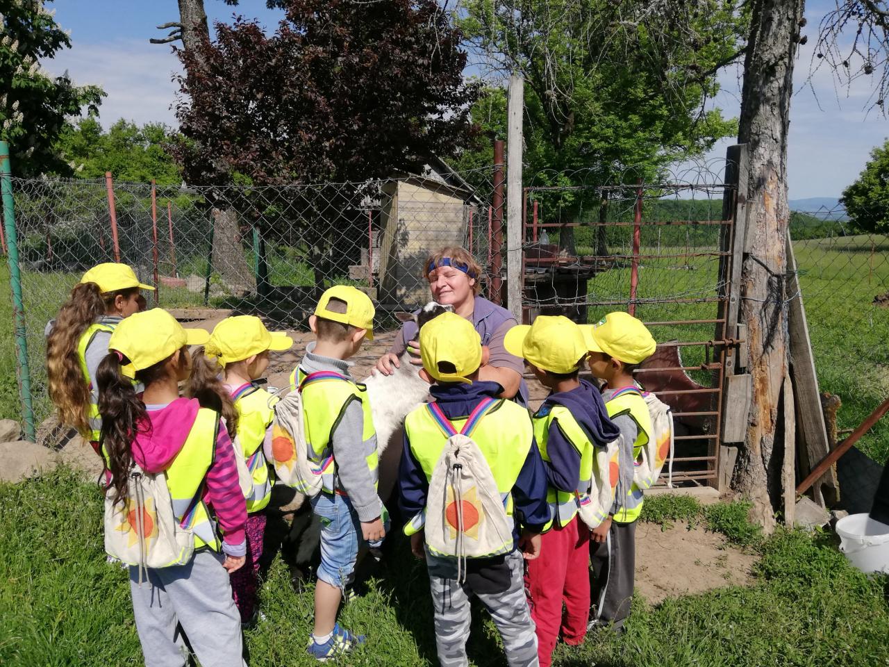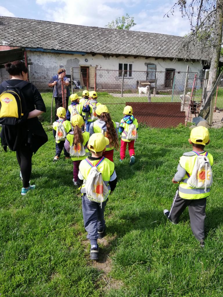 Štvrtok – podľa želania detí - výlet na Čelovské lazy časť Pustý hrad, kde býva jedna z pani učiteliek. Najúčinnejšou vzdelávacou metódou v MŠ je zážitkové učenie. Vďaka nej sa deti veľa dozvedeli o veľkých i malých kozičkách, ako vyzerajú, čo jedia, aký je z nich úžitok, ako rozoznávame kozieho „chlapca od dievky“, aká je veselá naháňačka s kozliatkami a aké príjemné je držať malé kozliatko v náručí. Vyhradený čas rýchlo ubehol a tak sme sa presunuli na susednú farmu, kde býva s rodičmi jedna zo škôlkárov. Deti sa vytešili s malými zajačikmi, šteniatkami veľkého psieho páru bernských salašníckych psov, vyskákali na trampolíne a pochutnali si na zdravom občerstvení. Aj tu čas rýchlo uplynul, bolo treba vydať sa na spiatočnú cestu. Plní dojmov, pocitov a zážitkov deti bez problémov zvládli cestu na autobusovú zastávku a počkali na autobus, ktorým sa vrátili späť do MŠ.