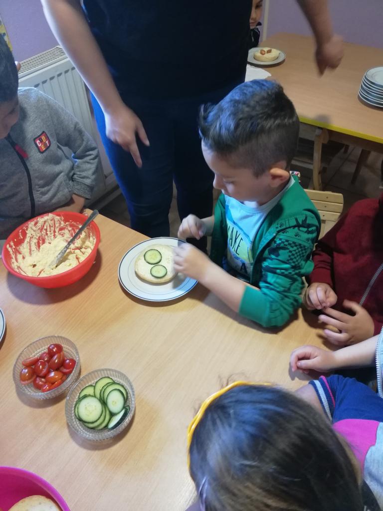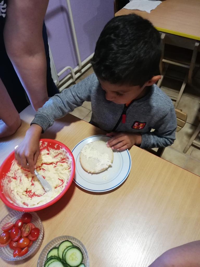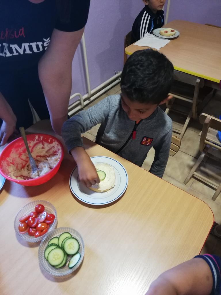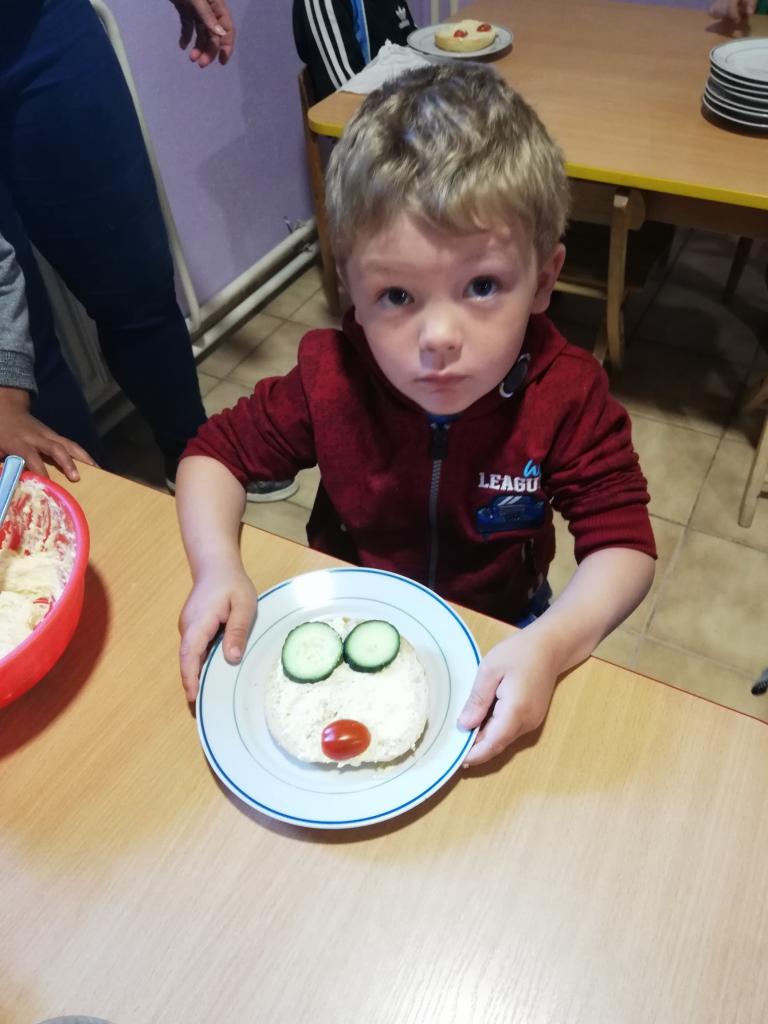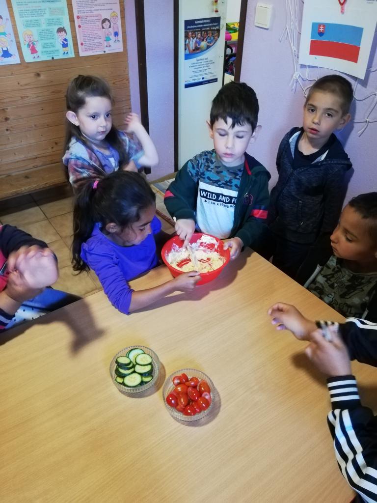 Piatok „Kuchársky deň“ – deti mali na stole naukladané všetky prísady a ingrediencie k syrovej nátierke. Podľa pokynov prísady zmiešali a každé dieťa nátierku vymiešalo, aby bola nadýchaná. Keď bola hotová, každé dieťa si natrelo svoju žemľu, obložilo so zeleninou podľa svojej fantázie.